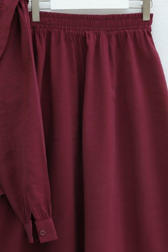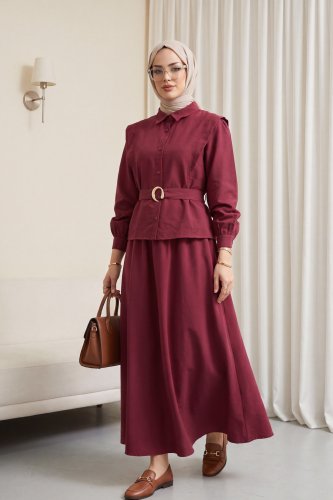 • Omzu Vatka Detaylı Kemerli Eteği Lastikli Modal Takım Mürdüm
