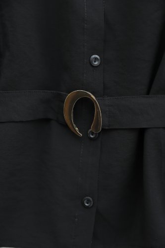 • Omzu Vatka Detaylı Kemerli Eteği Lastikli Modal Takım Siyah